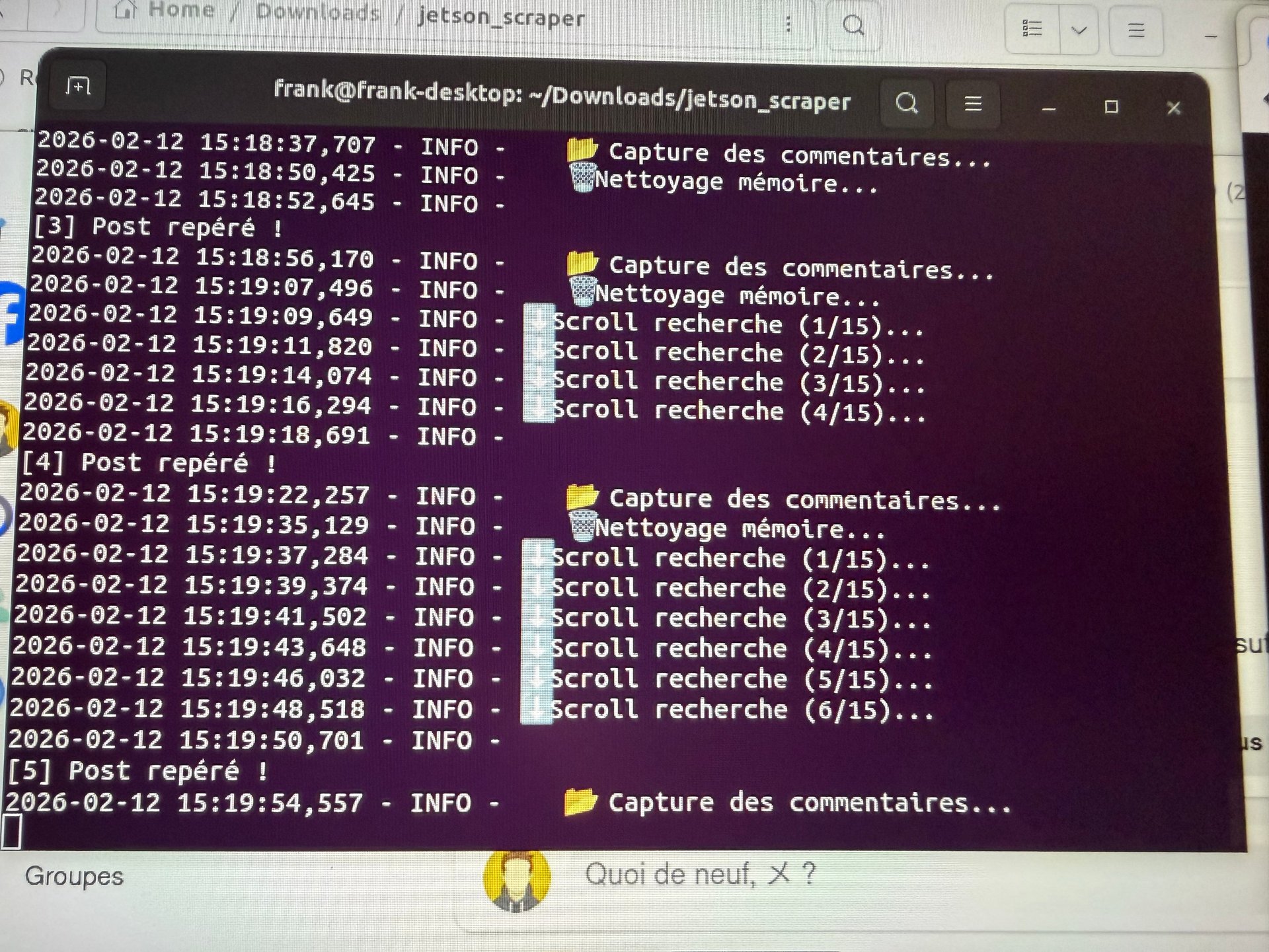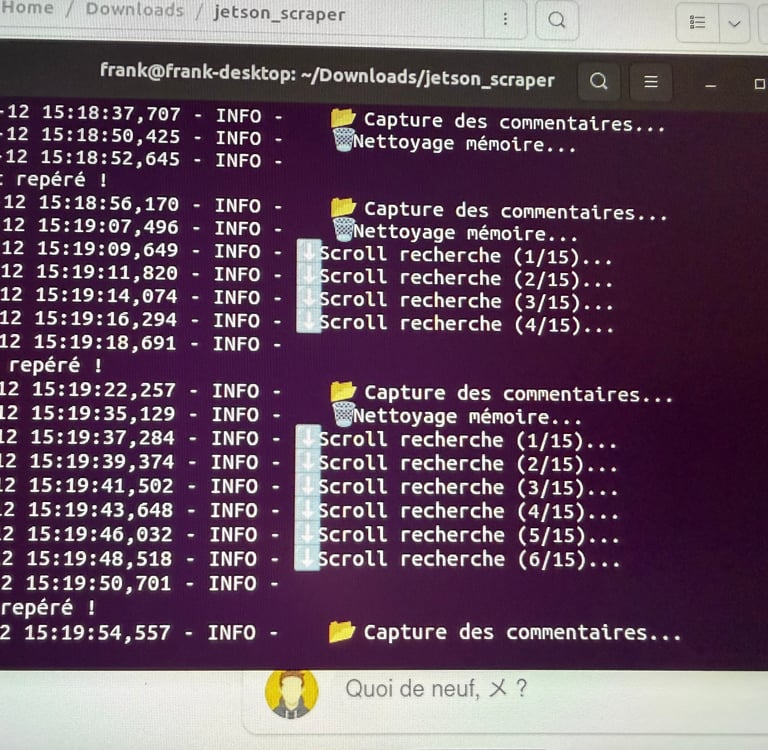 Test du scraping à partir du boîtier.